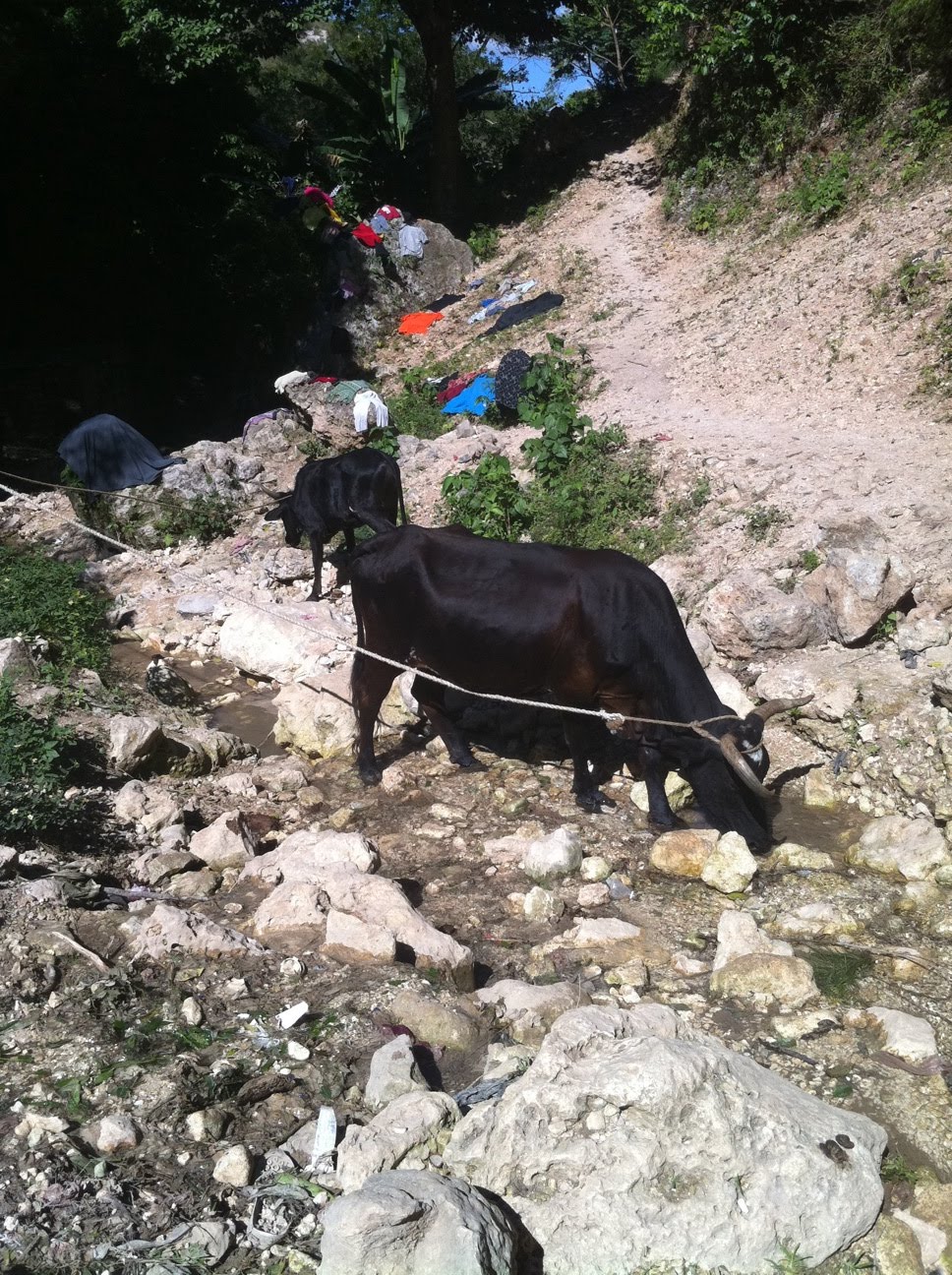 Cow in stream where people get their drinking water
