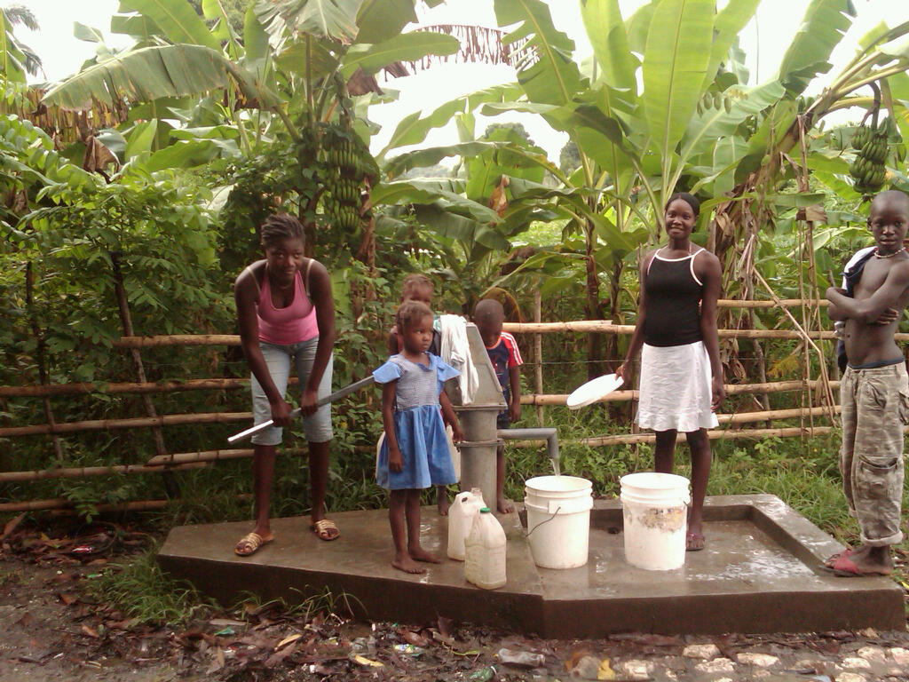 After heavy showers last night we are traveling over muddy single lane roads up river past cocoa plants, breadfruit, banana, coffee, mango and coconut trees. We are visiting small communities served by our wells. Each have a FFP number and are monitored often for their functionality.