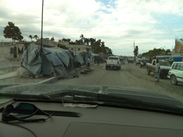 People live in tents on the median of the road