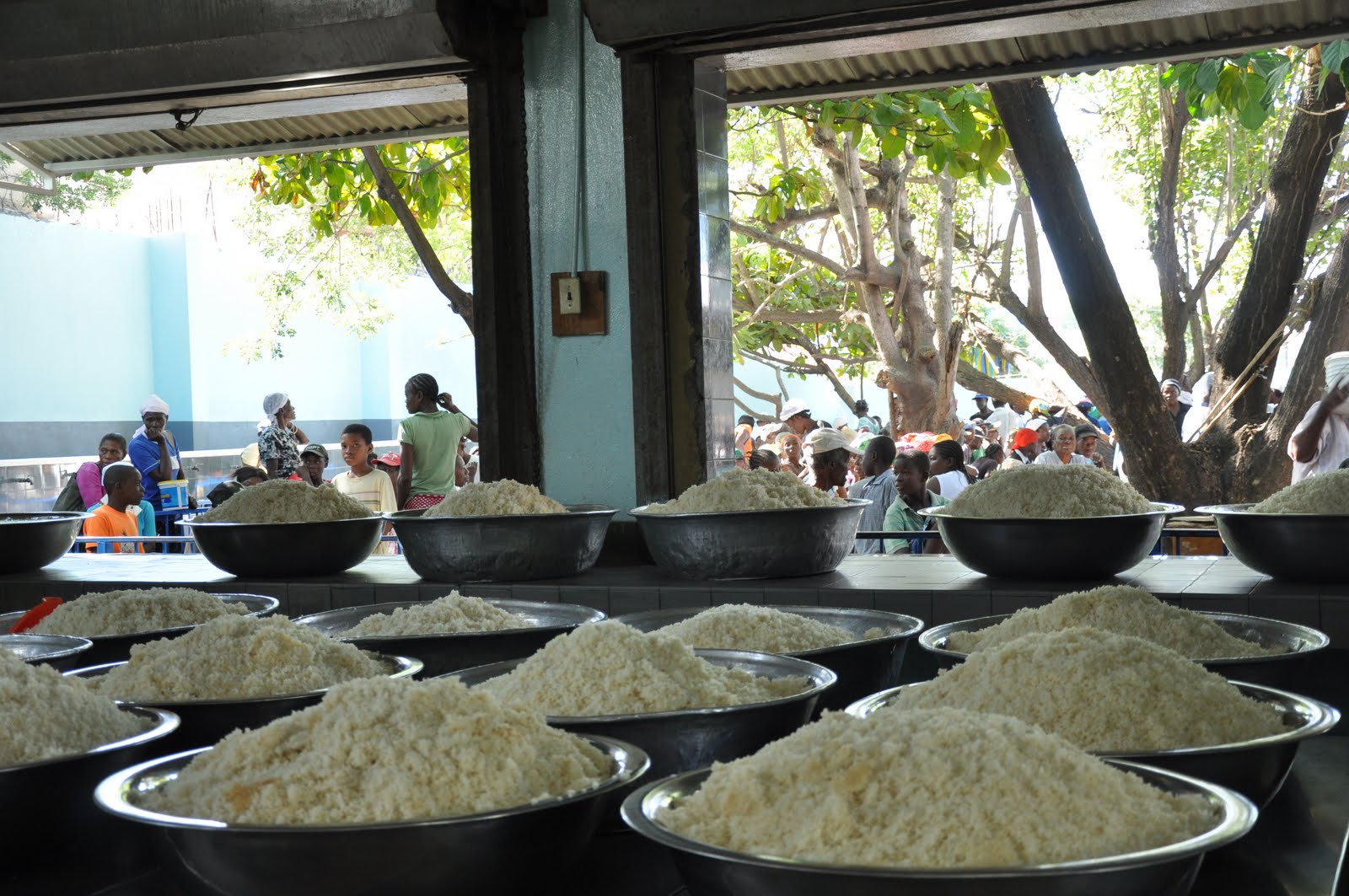 We arrived early this morning in Port-au-Prince, and first visited the Food for the Poor center where mounds of rice and beans were being prepared to feed thousands of Haitians. Six days a week, FTP prepares meals for 15,000 people twice a day. Although we did not participate in serving them today, we have in the past and were able to see again today the gracious thanks that the many give.
