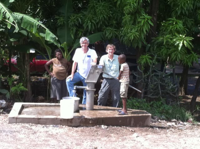 We have spent the morning inspecting wells in southern Hait. These particular wells serve people in very remote areas. The contractor that instled the wells guarantees them for life and fixes any wear and tear for free. The seven wells we looked at are all funded by our project, Waterlifehope in partnership with Food For the Poor. The wells are dated and I noticed that one of them was built on my birthday this year. A nice present.